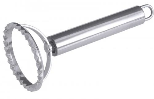 gewelltes Rädchen aus hochglänzend poliertem Klingenstahl, mit Fingerschutz Länge: 18,5 cm, Raddurchmesser: 5,7 cm